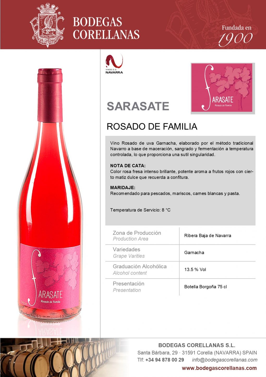 Vino Rosado de uva Garnacha, elaborado por el método tradicional Navarro, a base de maceración, sangrado y fermentación a temperatura controlada, lo que le proporciona una sutil singularidad.