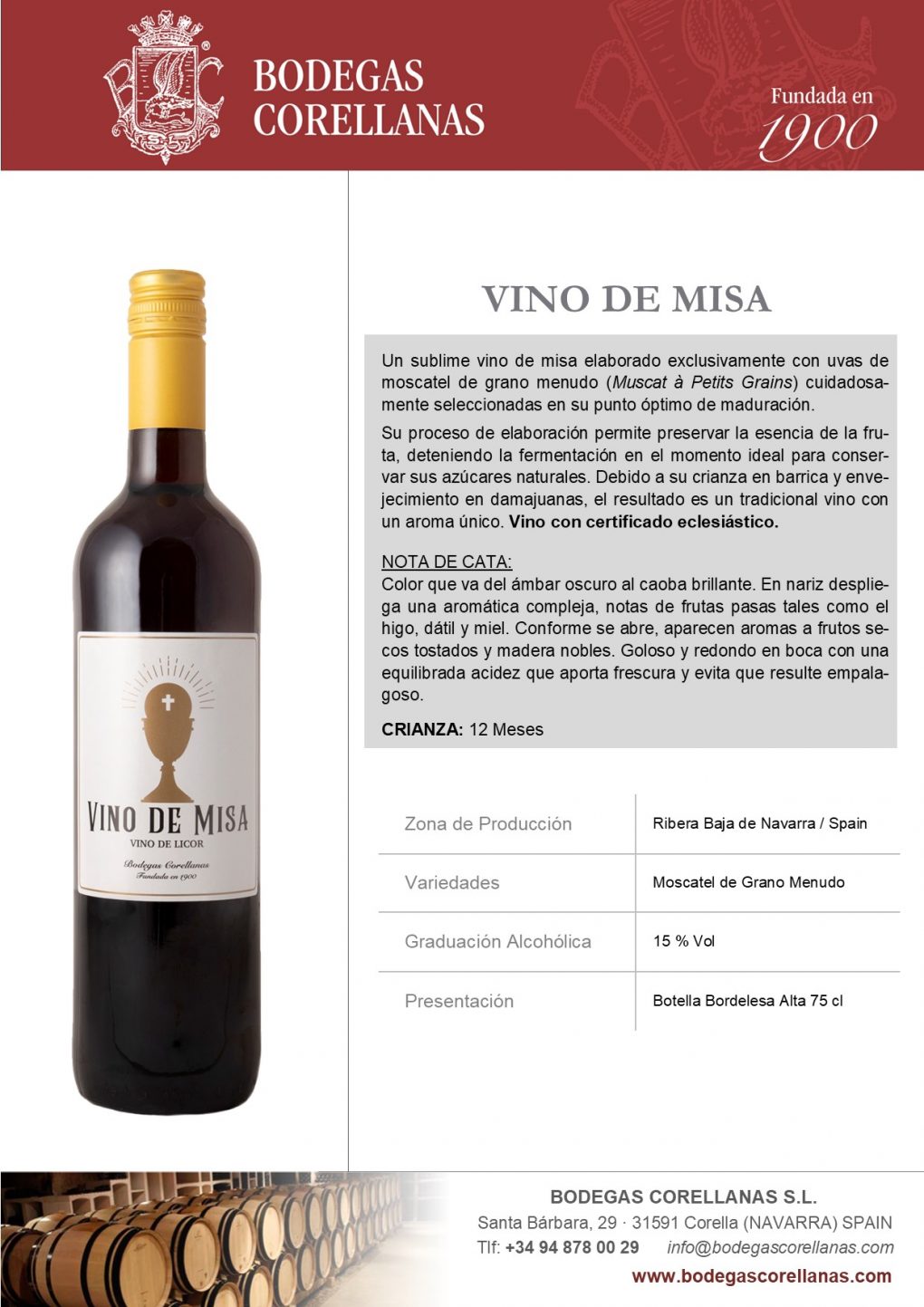 Un sublime vino de misa elaborado exclusivamente con uvas de moscatel de grano menudo (Muscat à Petits Grains) cuidadosamente seleccionadas en su punto óptimo de maduración. Su proceso de elaboración permite preservar la esencia de la fruta, deteniendo la fermentación en el momento ideal para conservar sus azúcares naturales. Debido a su crianza en barrica y envejecimiento en damajuanas, el resultado es un tradicional vino con un aroma único. Vino con certificado eclesiástico.